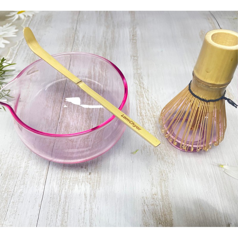LamChyar Matcha Bowl with Spout, Matcha Whisk Holder, Glass Matcha Bowl and W...