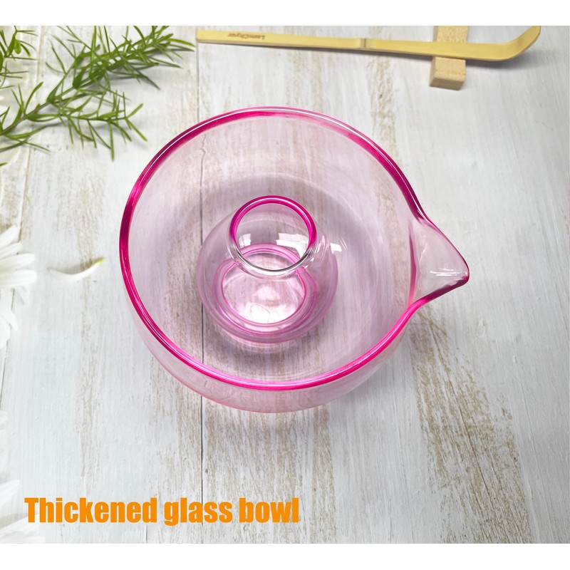 LamChyar Matcha Bowl with Spout, Matcha Whisk Holder, Glass Matcha Bowl and Whisk Holder Set, Exquisite Matcha Set for Tea Ceremony(Pink)