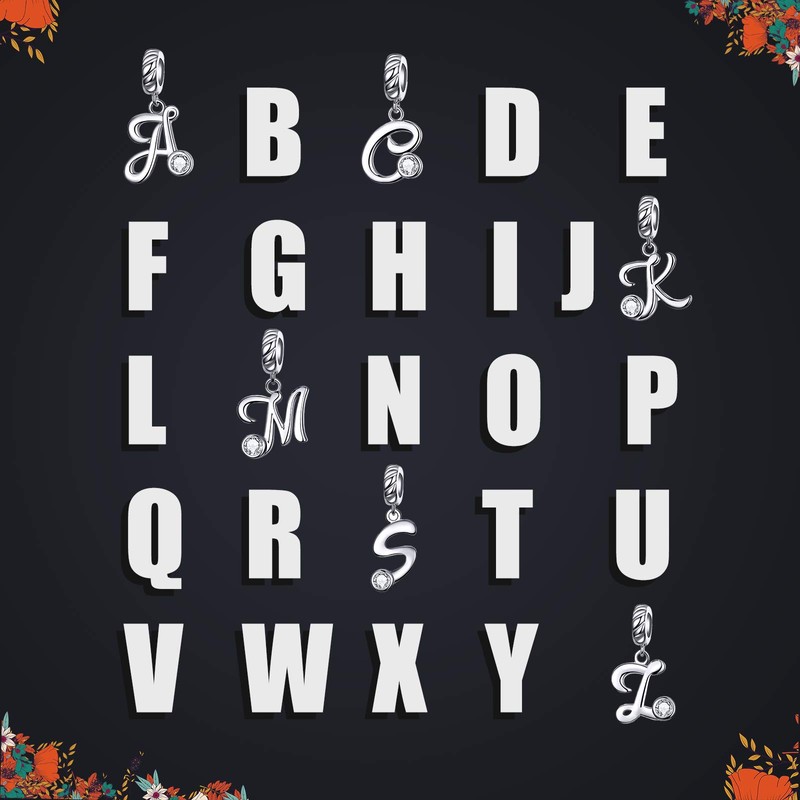 LaMenars Letter Dangle Bead Charms Initial Alphabet A-Z 925 Sterling Silver Z...