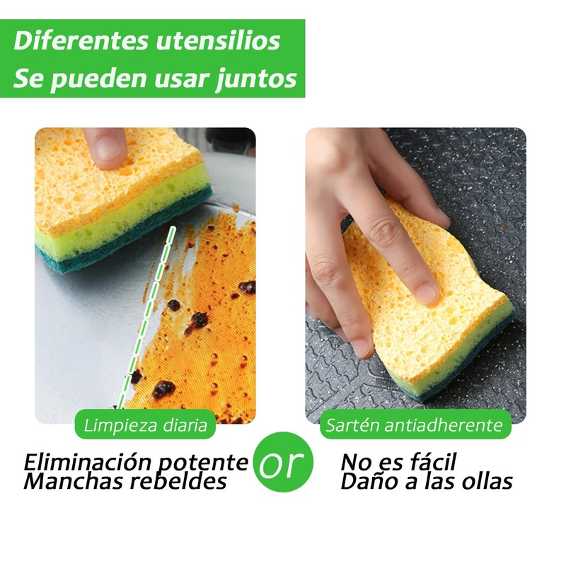 - 【Absorbente y Antirrayas】La esponja de limpieza natural absorbe el líquido rápidamente, produce una rica espuma, elimina la grasa y no deja rastros, y su material evita que los utensilios de cocina, vidrio y cerámica se rayen, limpiando eficazmente sin causar daños y manteniendo la integridad.