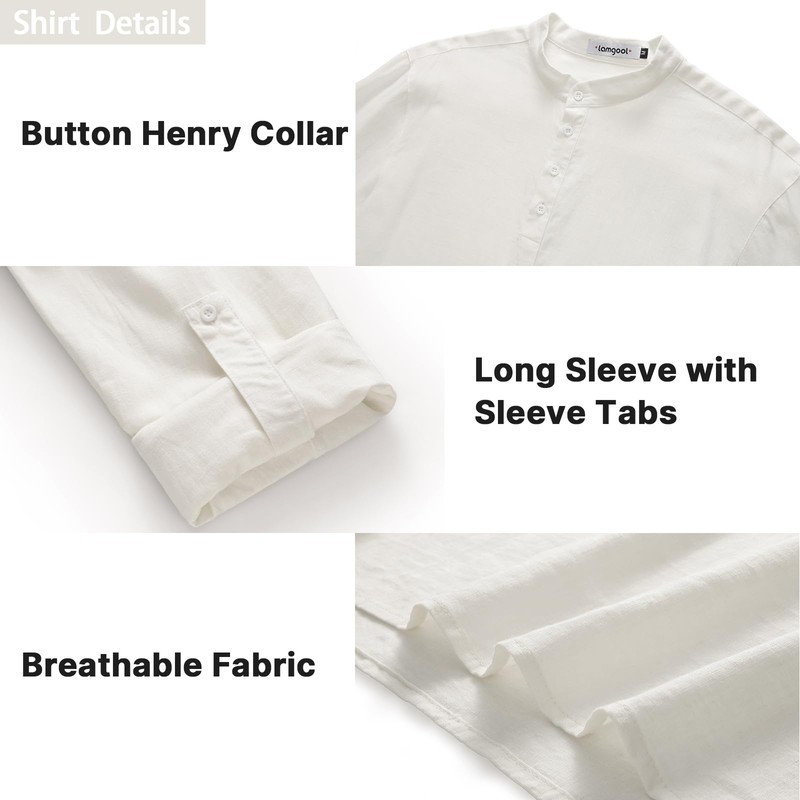 Lamgool Men’s Linen Set 15 Pieces Long Sleeve Button Henley Shirts Casual Drawstring Pants Summer Beach Yoga Outfits(White,M)