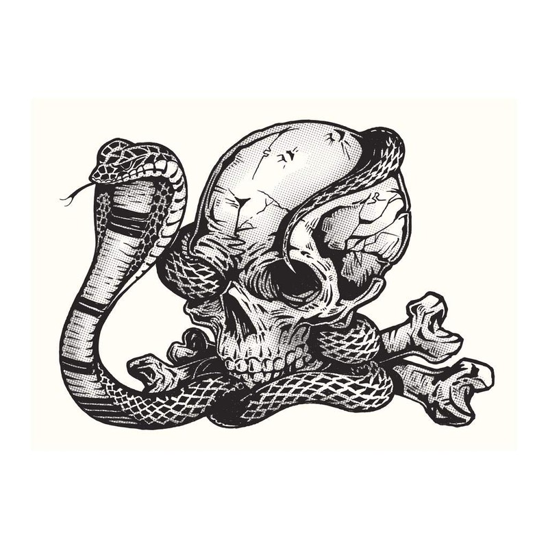 Laminated Human Skull Cobra Snake Pen Ink Tattoo Style Etching Artistic Design Poster Dry Erase Wall Art 12x18
