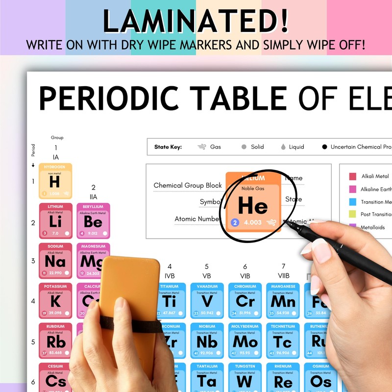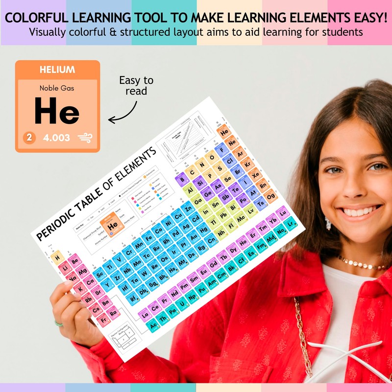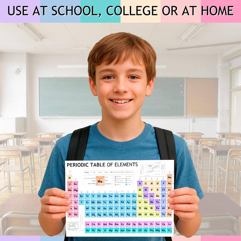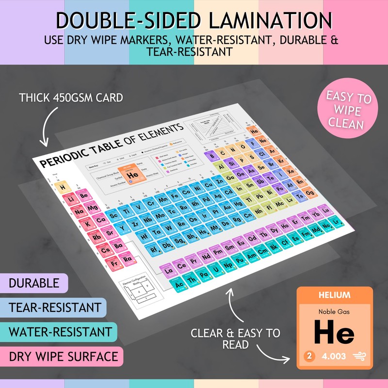 Laminated Periodic Table of Elements Poster for Kids – A4 Science Learning Chart – Colourful Chemistry Wall Display for Classroom or Home – Wipe Clean & Durable – 8"x12"