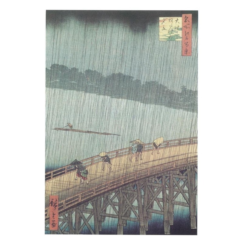 Laminated Utagawa Hiroshige Sudden Shower Over Shin Hashi Bridge And Atake Light Blue Poster Dry Erase Wall Art 16x24
