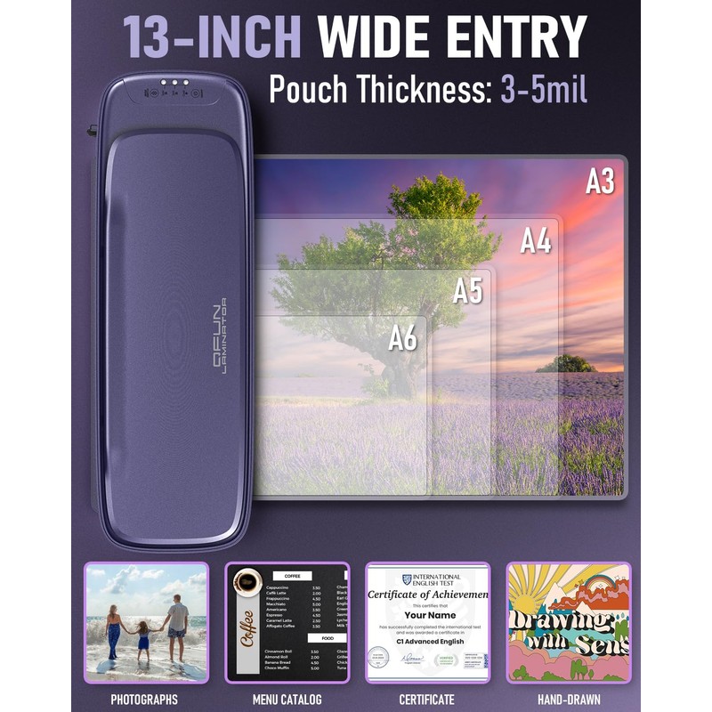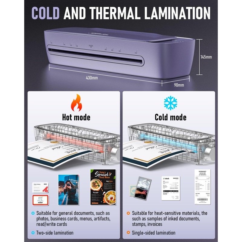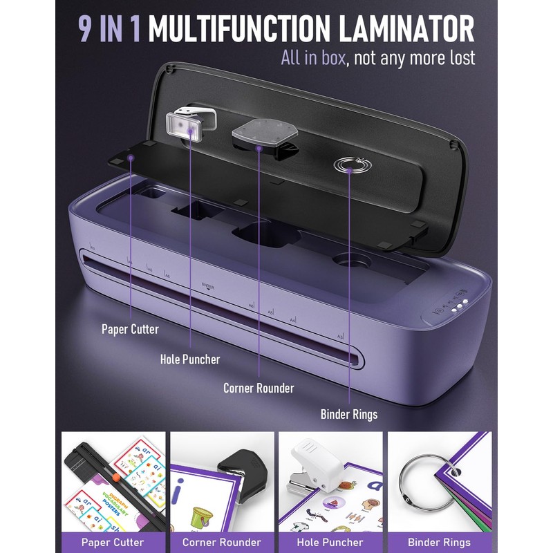 Laminator Machine 13 Inch Wide Thermal Lamination 9 in 1 Cold Hot A3 Laminating Machine for Teacher Personal, 60s Warm-Up No Jam laminator Machine 11x17 with 30 Laminating Sheets for Home Office Use