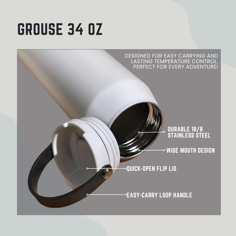 - Journey in style with our capacious Grouse 34oz Insulated Tumbler, thoughtfully designed to keep your drinks at just the right temperature and provide effortless portability.