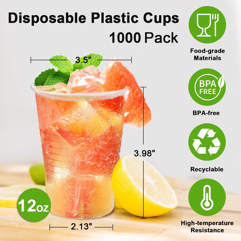 - Value Pack: You will get 1000 pack 12 ounce clear plastic cups at a affordable price, enough quantity to meet home or party use; great for water, tea, juices, iced coffee, smoothies, milkshakes, beer, frozen cocktails, sodas; the plastic material is highly clear, presenting a high-end appearance for a good clarity