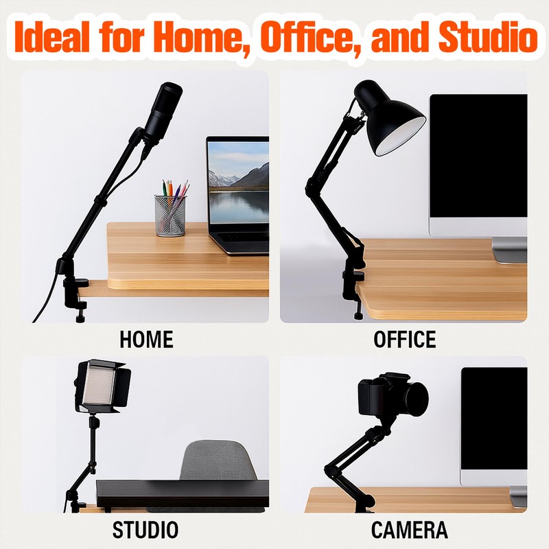Lamp Clamp Desk Light Mount Replacement Heavy Duty Base Adjustable For Microphone Arm Table Holder Universal Desktop Bracket C-Clamp Mic Stand Metal Mounting Swing Drafting Clip Hole Dia with Screw