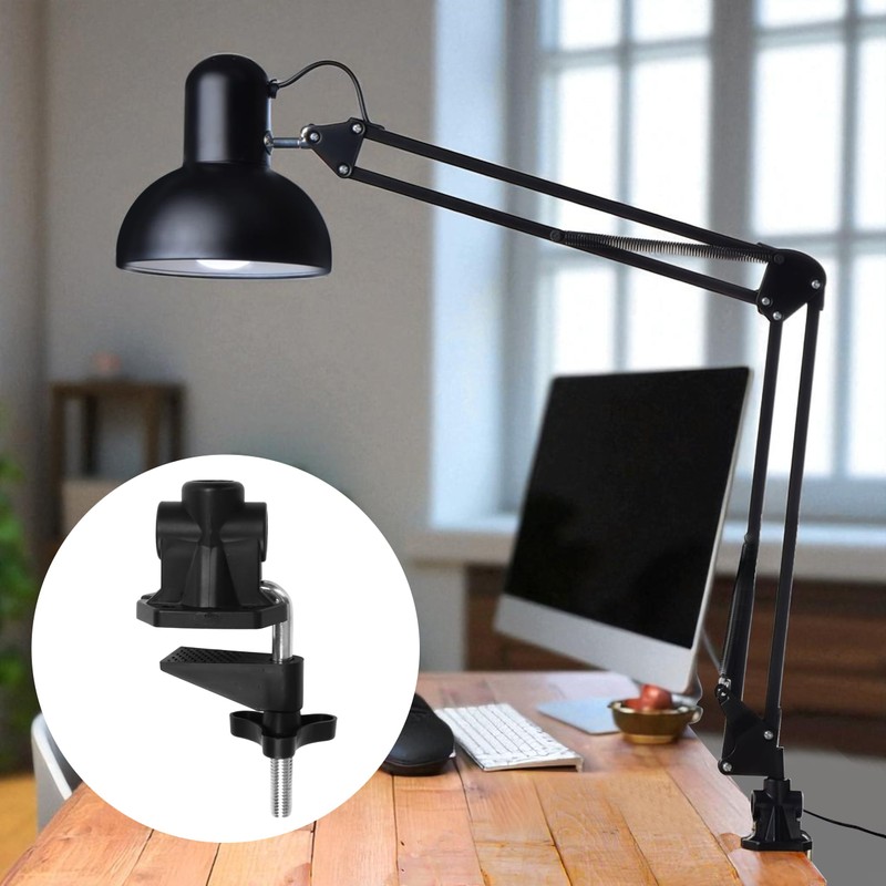 - Enjoy adjustable lighting angles with the 360 degree rotatable clip and extendable lamp head of our Black Metal Desk Lamp; easily customize light direction to suit your needs and create the perfect illumination for any task. Note: Check clamping thickness and hole diameter before ordering.