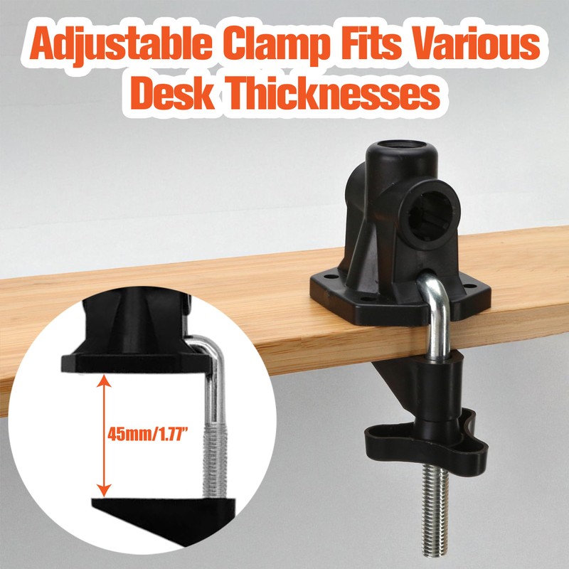 A soft, non-slip protective pad on the clamp base prevents scratches while keeping the clamp stable. The adjustable screw design ensures secure mounting for lamps, microphones, or accessories on desks and other flat surfaces.
