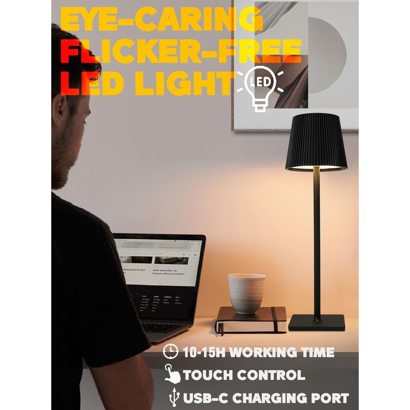 - Amplia Aplicación: la lámpara LED inalámbrica tiene un aspecto plisado minimalista y clásico, adecuada para varios escenarios. Junto con los 3 modos de iluminación y la función de atenuación continua, se puede usar en el dormitorio, la sala de estudio, la sala de estar, la oficina o como lámpara decorativa en un restaurante, bar, cafetería, habitación de hotel y cualquier otro lugar, creando una atmósfera romántica.