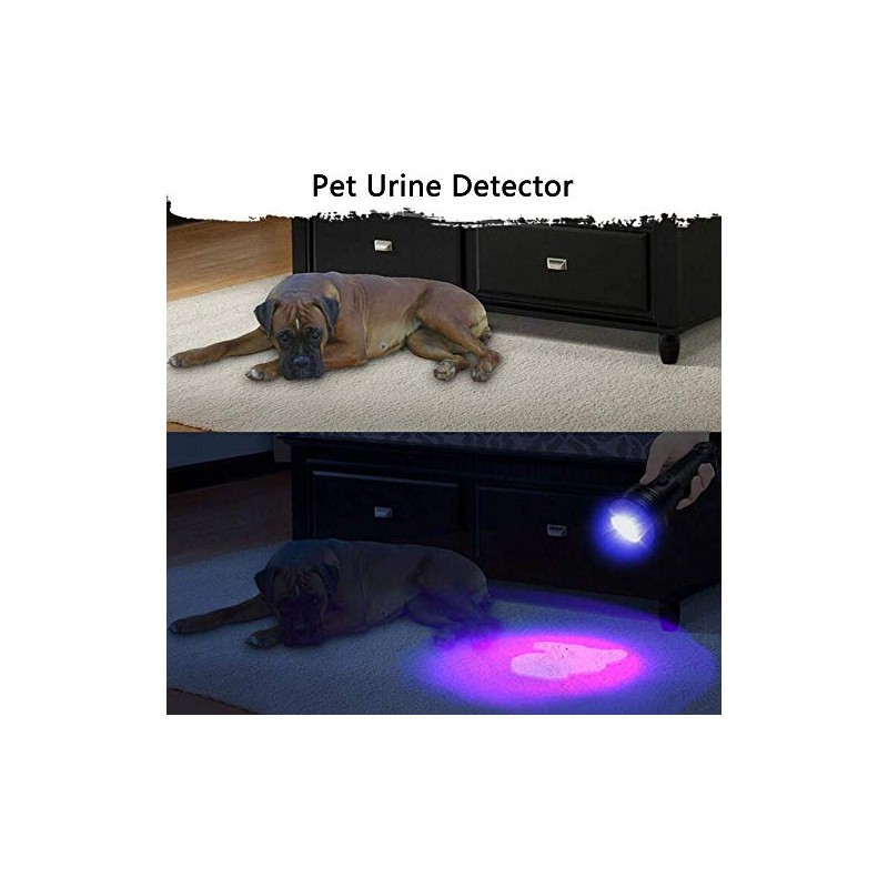 - 【Linterna UV de 51 LED】 La linterna UV tiene lámparas LED de alta potencia de 51 piezas, por lo que el cono de luz de la linterna UV es extremadamente brillante. La linterna UV puede emitir un cono de luz coherente y cubrir un área más grande. Nuestra linterna UV de luz negra detecta más fácilmente las manchas de orina ocultas de gatos y perros en la casa.