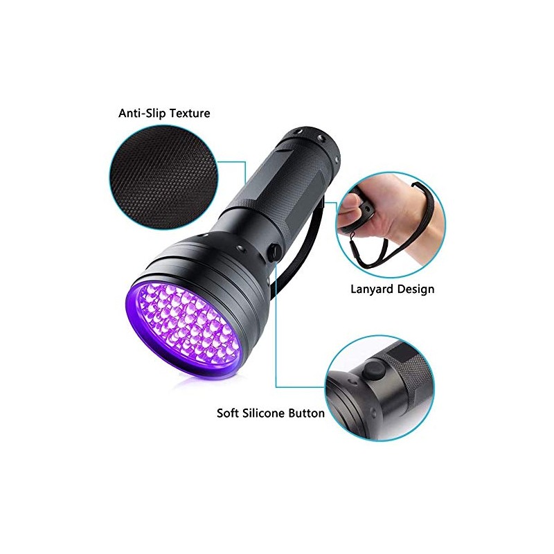 Lampara UV, Luz Negra Ultravioleta, Linterna UV 51 LED, 395nm Detector de Billetes, orina, manchas, joyas, colección,Caza de Alacranes,etc.