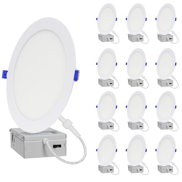 LAMPHOME 12-Pack of 8-Inch Slim LED Recessed Lights with Junction Box, Adjustable Color Temperatures (2700K-5000K), 18W Equivalent to 125W, Dimmable, 1600LM Brightness - ETL and Energy Star Certified