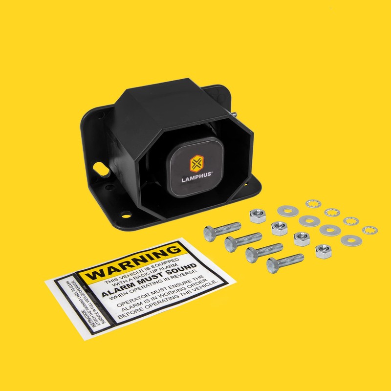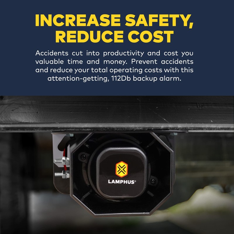 LAMPHUS Backup Sound Alarm for Pickup Truck [112dB] [SAE J994 Class A] [12V - 48V DC] [SoundAlert] Universal Reverse Back-Up Warning Beeper for Industrial Heavy Equipment Forklift Work Van Car Vehicle