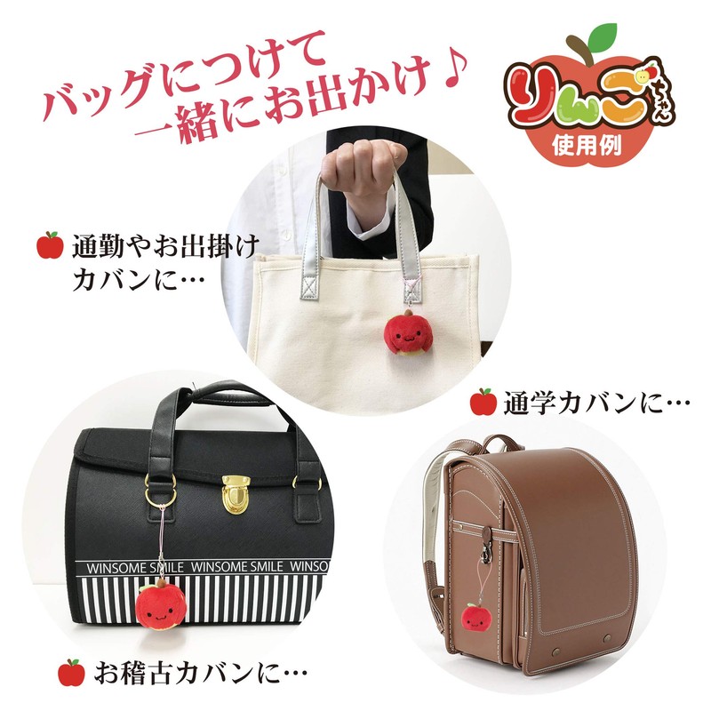 LamPlanning Ringo-chan Keychain, Mascot, Strap, Back Charm, Cute, Plush, Fluffy, Apple, Fruit, Healing