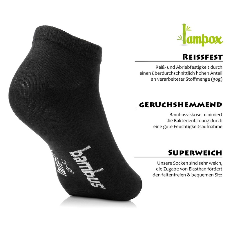 lampox Bamboo Trainer Socks (6x Pairs) - 3x black + 3x white, size: 39-42