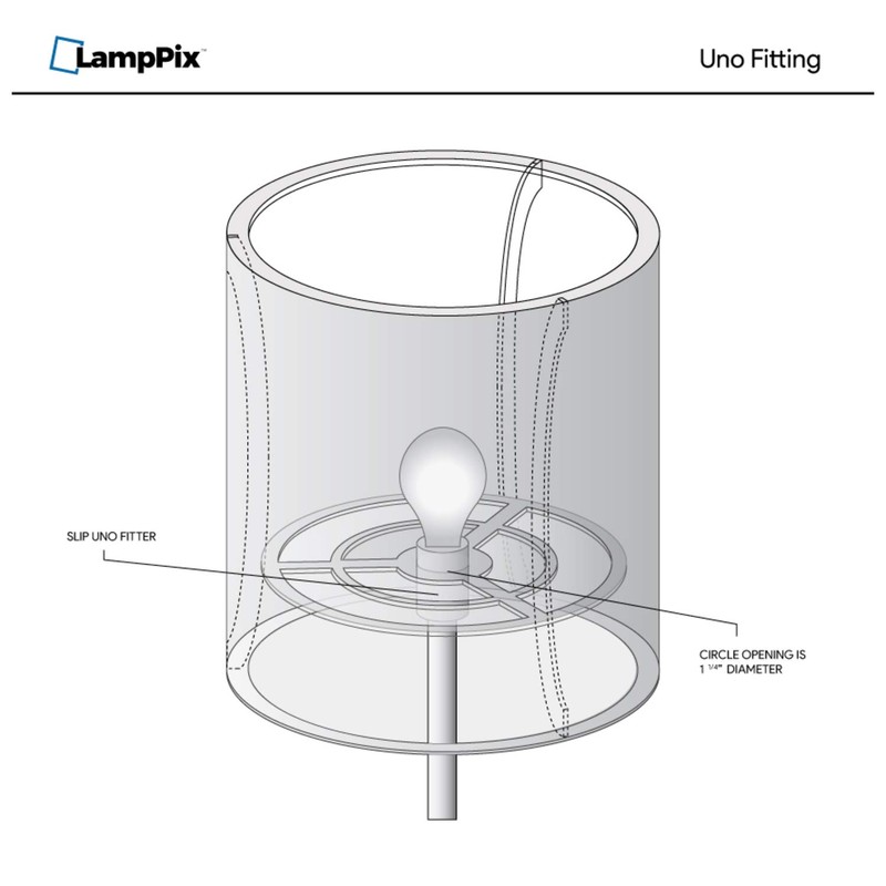 - Shade can affix to any table or desk lamp with a Uno style fitting