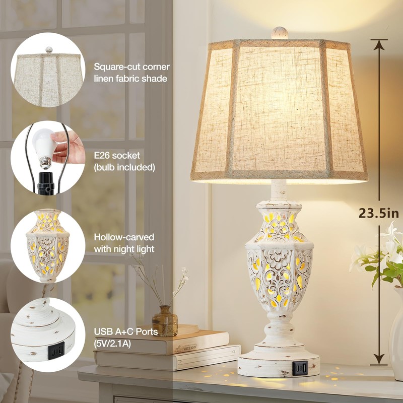 - ๐๐ง๐ข๐ช๐ฎ๐ ๐๐จ๐ฅ๐ฅ๐จ๐ฐ-๐๐ฎ๐ญ ๐๐ข๐ ๐ก๐ญ ๐๐ข๐ ๐ก๐ญ ๐๐๐ฌ๐ข๐ ๐ง โ Farmhouse table lamp blending style, functionality, and convenience, this resin table lamp for bedroom offers more than just illumination. Bedside lamps are versatile design includes device charging and mood lighting, while the night light adds an elegant, relaxing ambiance to your space.
