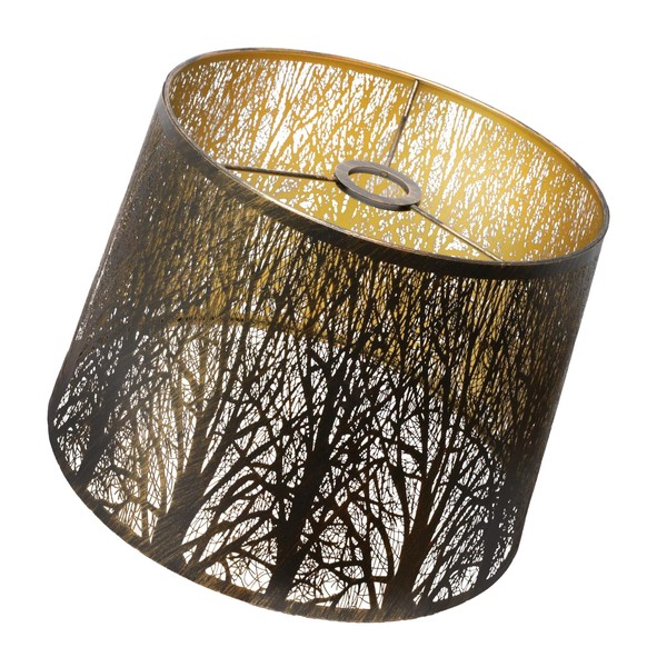Lampshade Large Drum Lamp Shade 12" Top x 14" Bottom x 10" High (UNO Fitter) Metal Lamp Shades Antique Bronze and Gold Lampshades Replacement for Table Lamps and Floor Lamp Art Etched