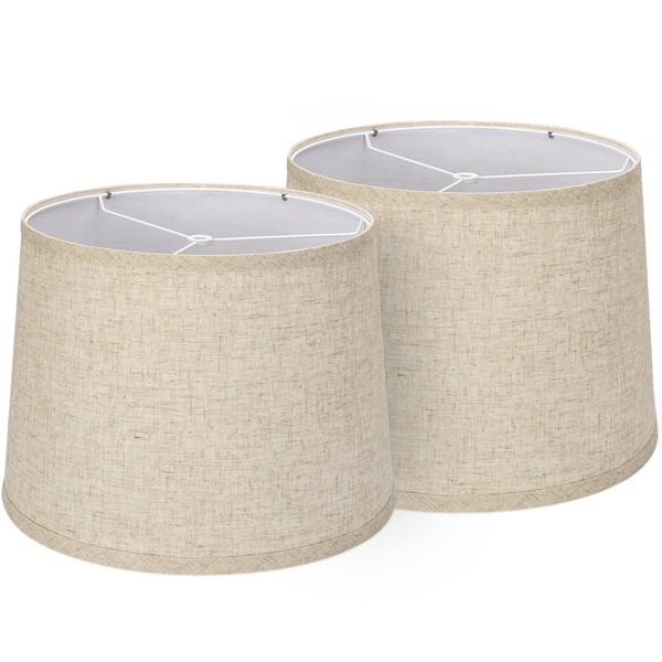 Lampshades Set of 2, Drum Lampshades 11.6" Top x 12.6" Bottom x 9.8" High, Seaside village Medium Lampshades (Spider Fitter), Beige Lampshades Natural Linen Hand Crafted, Easy Assembly Required