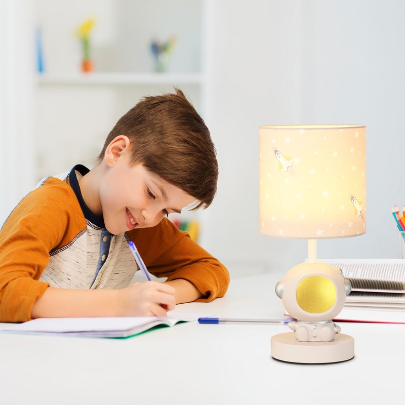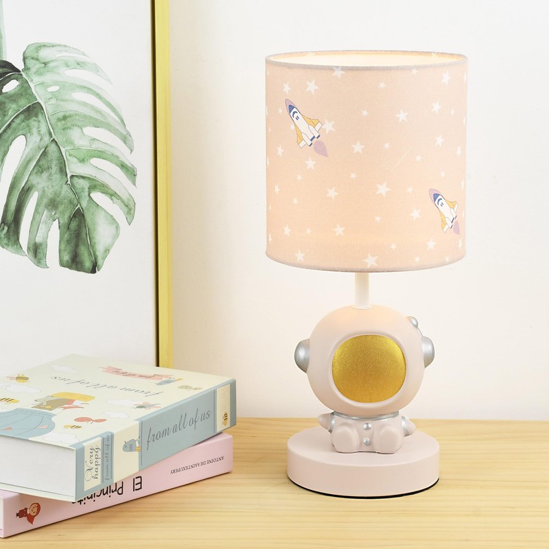 - ORIGINAL DESIGN:This astronaut table lamp is designed by our professional designer.The base uses a cute ceramic astronaut with hand-made painting.The fabric lampshade also uses astronaut patterns that matches perfectly with the base.It is nice as a small table lamp for living room and a bedside table lamp for bedroom.This astronaut table lamp is also nice as kids table lamp,night light and nursery table lamp.