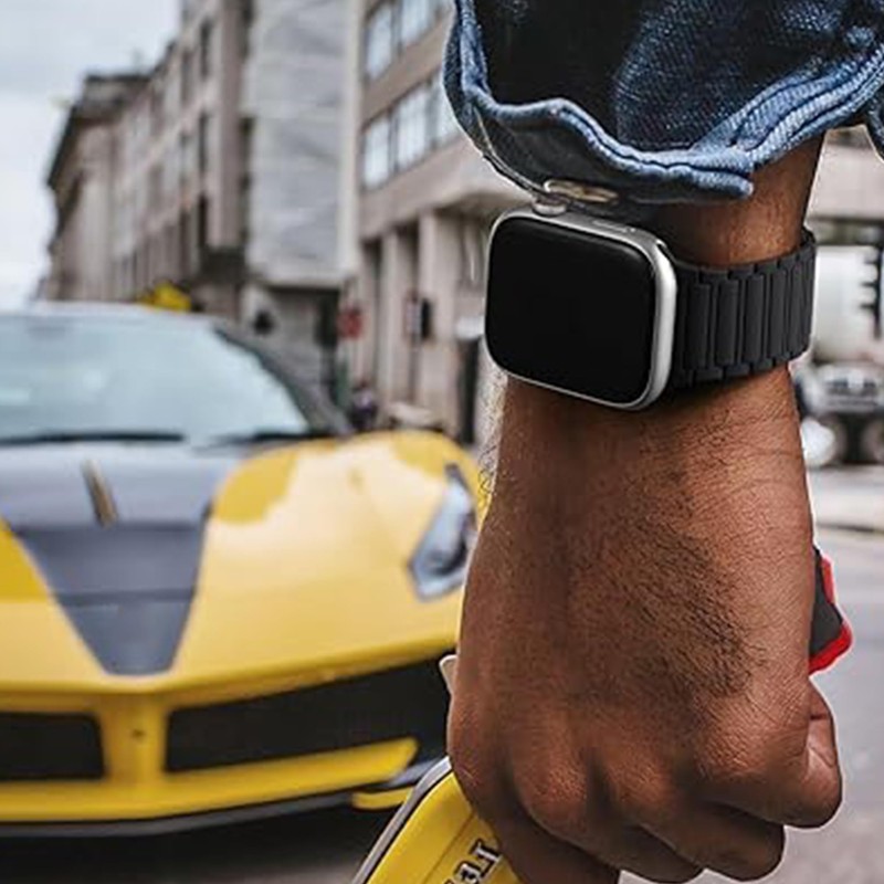 - N54 Powerful Magnetic & Safety Loop Design: Upgraded with N54 magnets, our Watch band offers 30% stronger hold than bands using N52 magnets, ensuring greater stability during intense activities. The secure magnetic adsorption and detachable safety loop provide double protection, so whether you're running, working out, or exploring outdoors, your watch stays firmly in place without compromising comfort