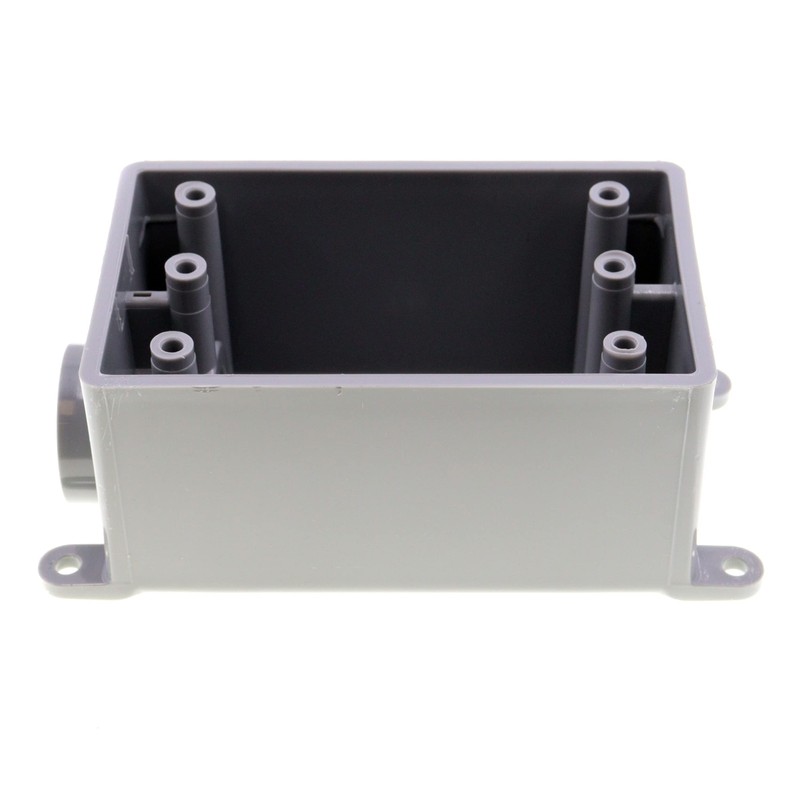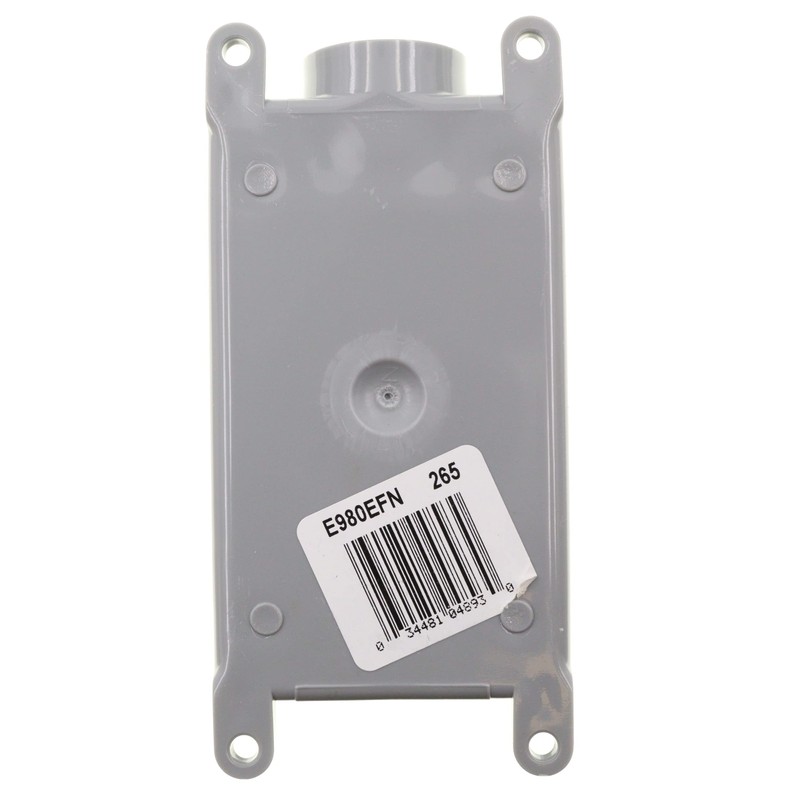 The Carlon FSE 3/4-inch Switch Box is for exposed applications and dead end terminations. Mounting feet are included. It will not rust or corrode and is both non-metallic and non-conductive.