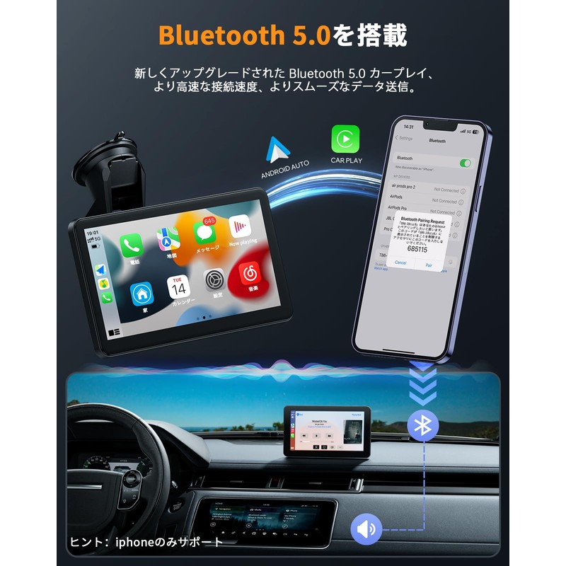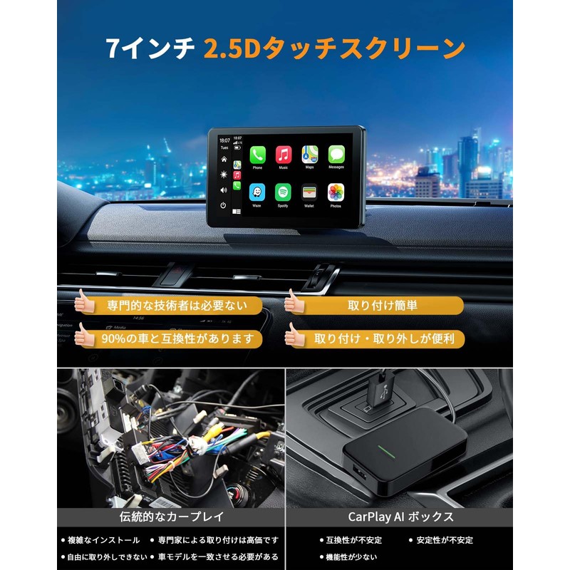- Wireless A-pple CarPlay and Android Auto: Built-in car audio support auto play function for car play and Android Auto. iPhone features like music, GPS navigation, voice mail, calls, notifications, messages and more, can be accessed via voice control and touch screen control. Carplay is a safer way to use your phone in the car. It can be used on any car model, convenient to install, no need to worry about compatibility issues, save your installation cost