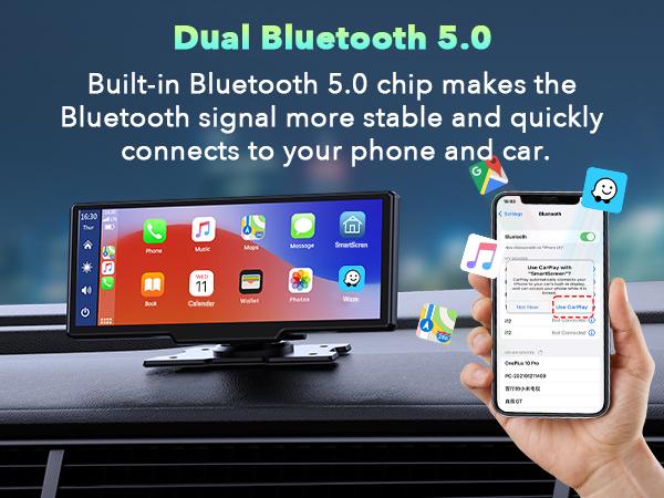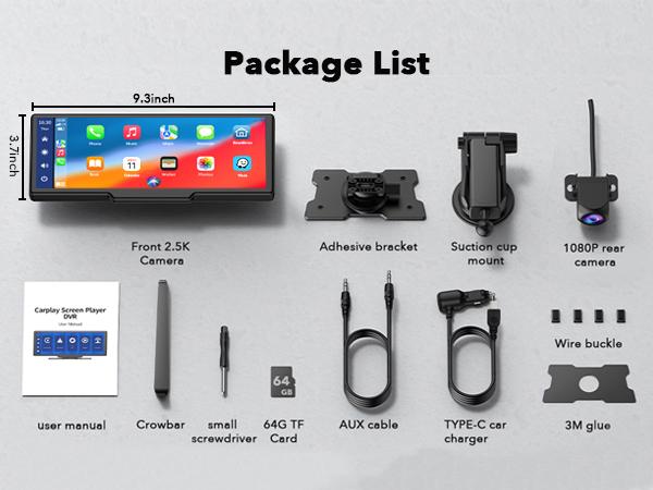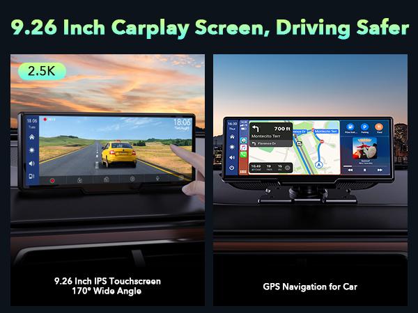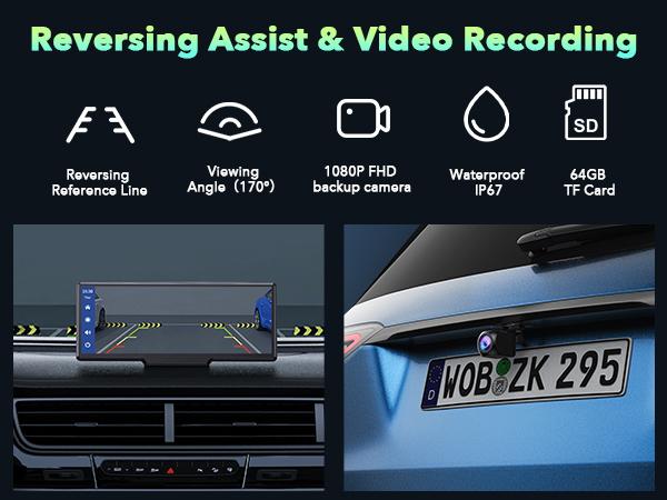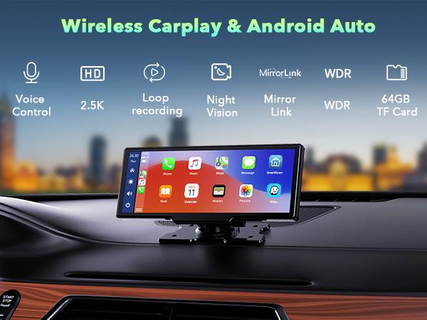 LAMTTO Wireless Car Stereo Carplay with 2.5K Dash Cam 1080P Backup Camera Support Bluetooth/AirPlay/GPS with 64GTFCard