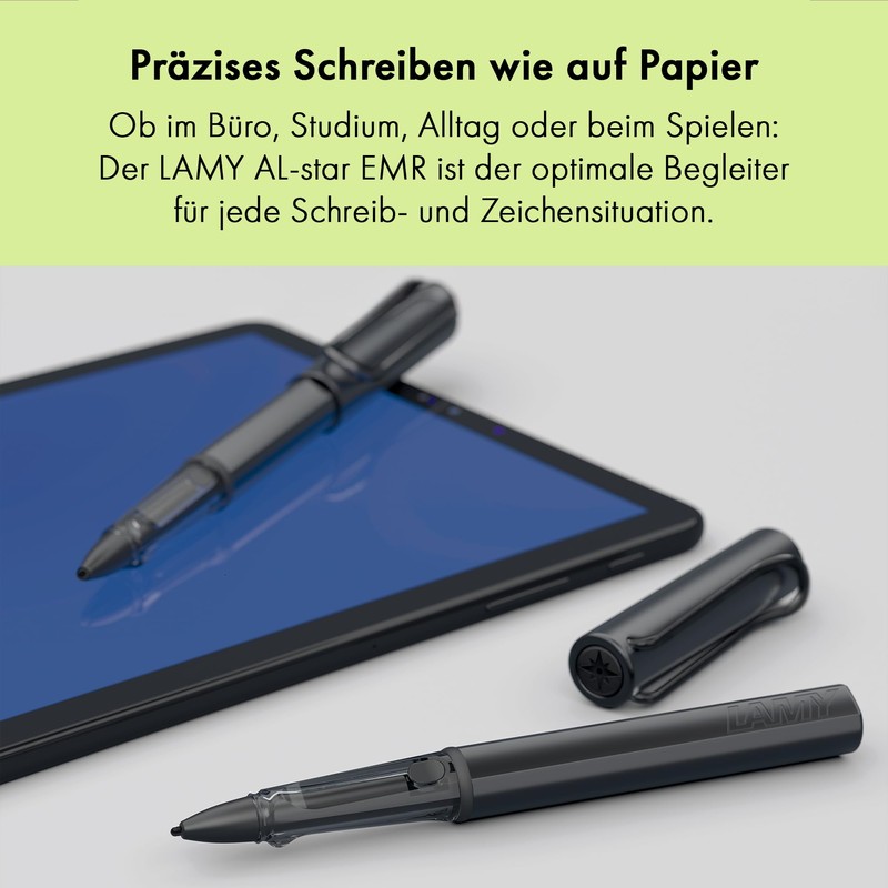 - Precise and sensitive: thanks to the outstanding precision and high sensitivity of the Lamy Al-star, writing feels like you are writing on paper. In addition, the PC/EL pointer tip of our pen for tablet and mobile phones can be easily replaced and guarantees sustainable and long-lasting use.