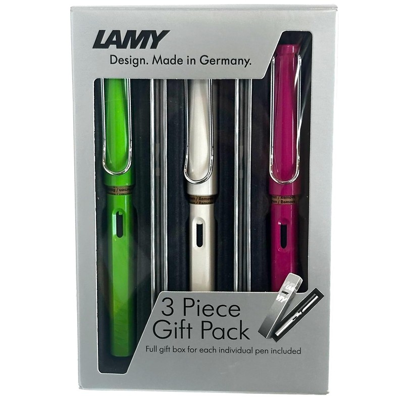 Lamy safari fountain pen 3-piece gift set - M nib - pink, green, white