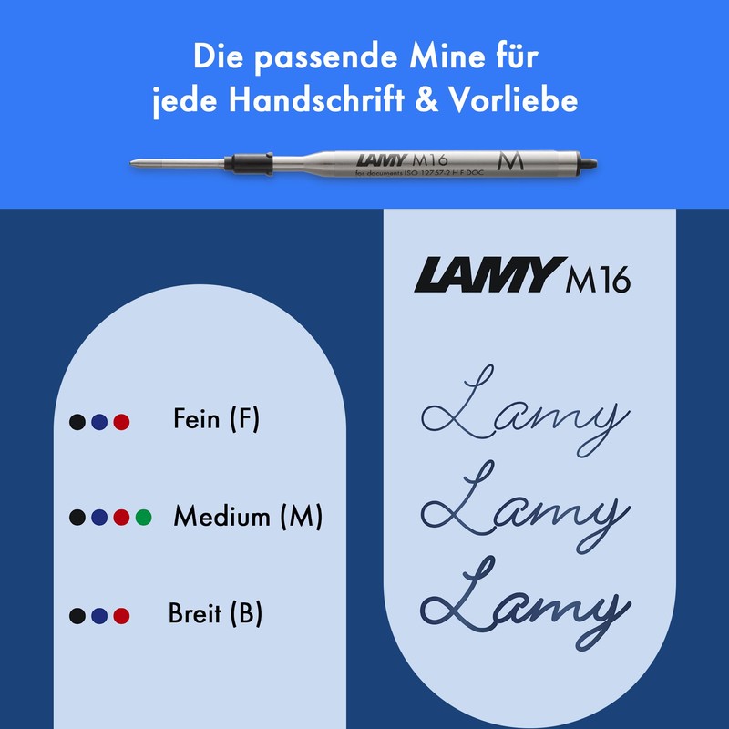 - Accessories included: Enjoy the writing experience with the included black large capacity refill LAMY M 16 in line width M. Tip to supplement: A matching rollerball pen, mechanical pencil and fountain pen expand the creativity and uses of this timeless classic.