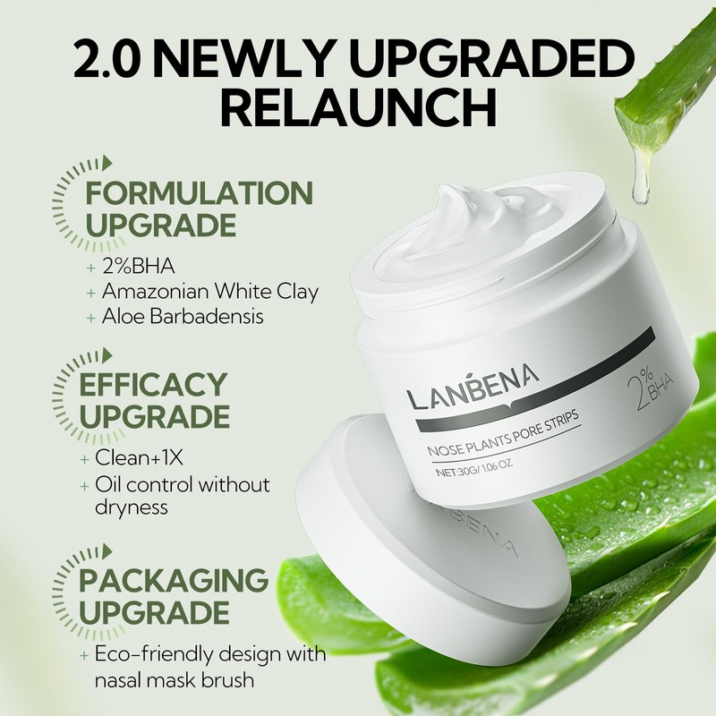 LANBENA Blackhead Remover is the ultimate solution for clearer, smoother skin. This powerful 2-in-1 treatment combines a blackhead remover mask and 60 nose pore strips designed to effectively lift away impurities and unclog pores. The 30g mask deeply penetrates to eliminate blackheads, reduce oil, and prevent future breakouts. The nose pore strips are easy to use, offering quick and efficient removal of blackheads and excess sebum. Suitable for all skin types, this product helps you achieve a refreshed and glowing complexion with regular use. Enjoy clear skin and a clean, revitalized feel with LANBENA.