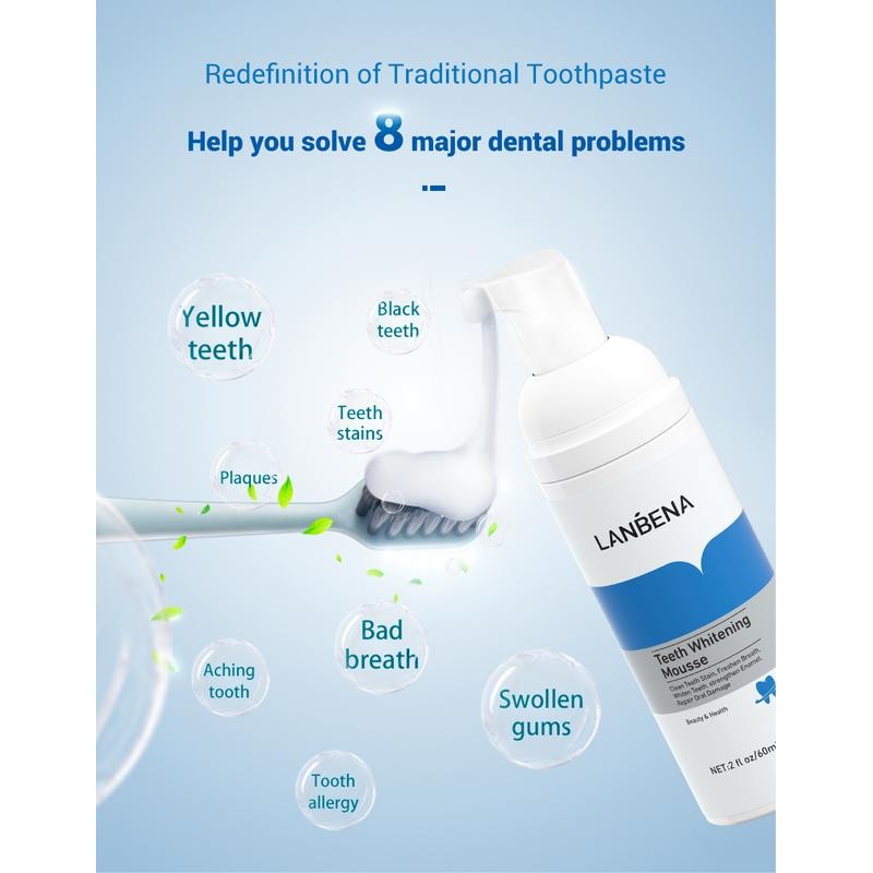 LANBENA Teeth Whitening Mousse for Easy and Effective Teeth Whitening Deep Cleaning Fresh Breath 60ml - Oral Care - Specification: 1pc