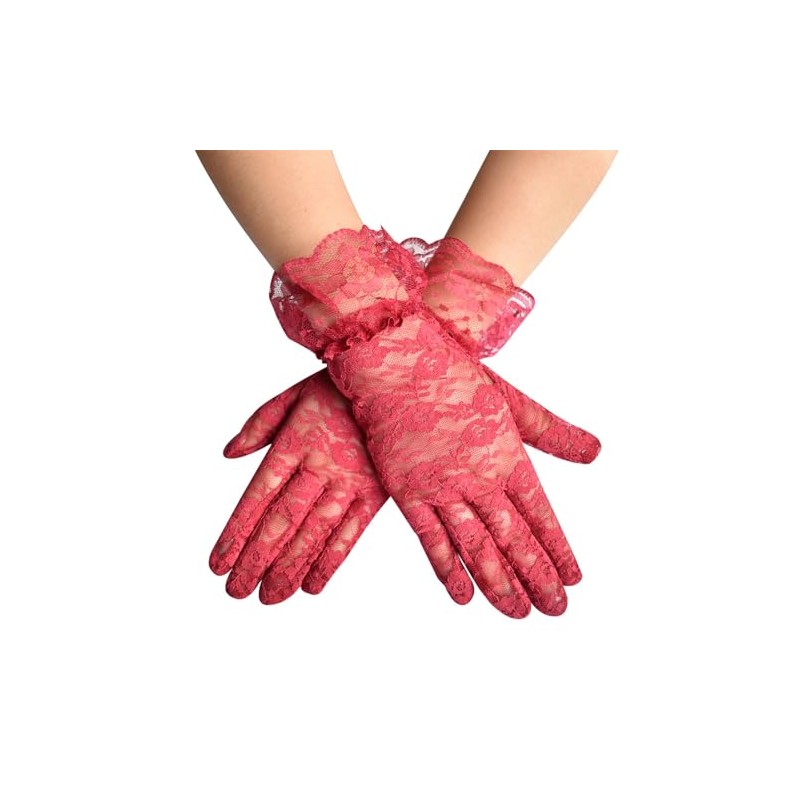 [LanBuff] グローブ レース 可愛い レディース手袋 UVカット手袋 ショート 滑り止め 紫外線対策 日焼け止め ウエディング アウトドア ドライビング用 春夏 (赤ワイン)