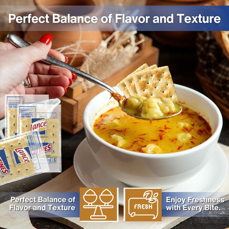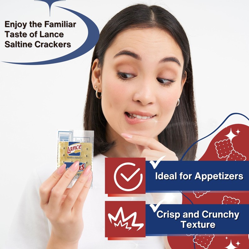 - 🍪Wholesome Convenience: Enjoy 100 pre-packaged single-serve Lance Saltines Crackers, perfect for busy lifestyles. Ideal for picnics, parties, camping, road trips, office snacks, and more, it provides a hassle-free solution for your mealtime needs. Each two-cracker pack is individually wrapped for easy portion control, ensuring the perfect serving size without any waste or excess.
