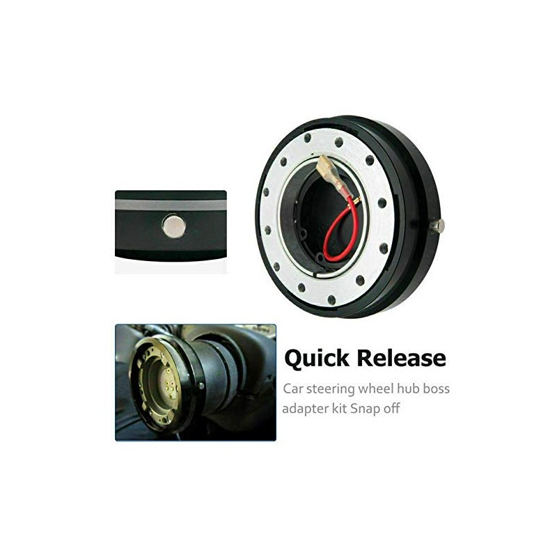 • ✔ Car Steering Wheel Quick Release Hub Adapter --- This quick release hub adapter kit fits between the steering wheel and the hub kit, it can help you quickly release the car steering wheel. It's an effective way to deter theft of the vehicle and it also helps to ease access in and out of the vehicle for the driver.