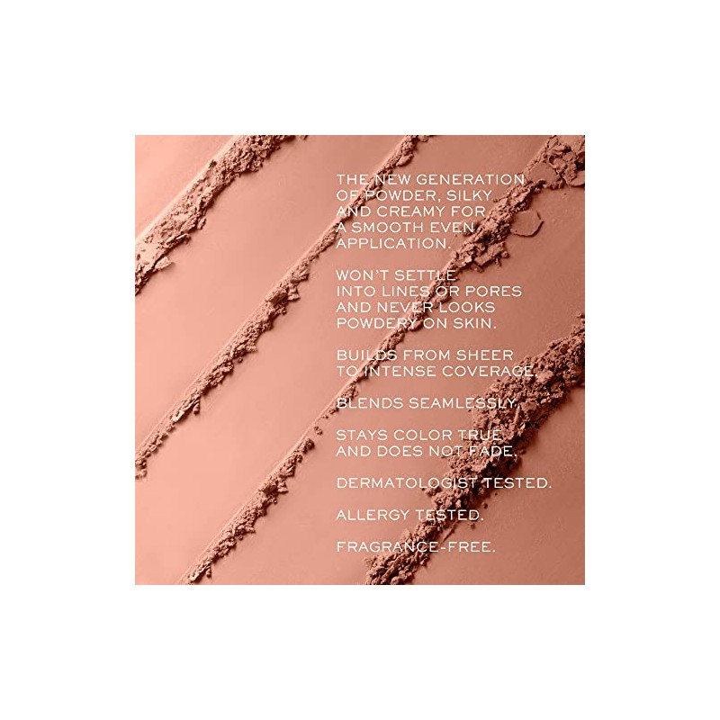 - FORMULA - The new generation of powder, silky and creamy for a smooth even application. Won’t settle into lines or pores and never looks powdery on skin.