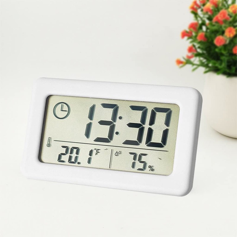 Lancoon Electronic Thermo-Hygrometer, Small Clock with Temperature, Humidity, ℃/℉ Switch, LCD 12/24 Hours, Hanging and Standing, for Home, Bedroom