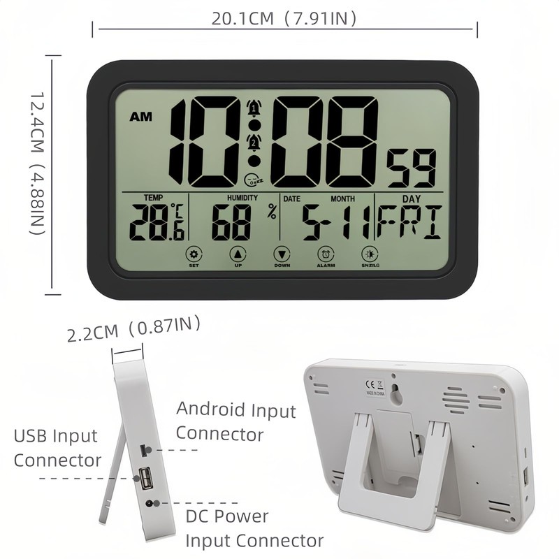 - Three input interfaces: the alarm clock has three input interfaces, the USB input interface, Android input interface and DC input interface to meet your different needs.