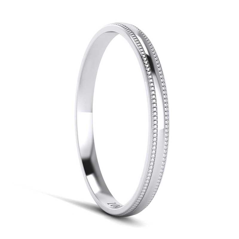 Unisex 10k White Gold 2mm Light Court Shape Comfort Fit Polished Wedding Ring Milgrain Band (11)