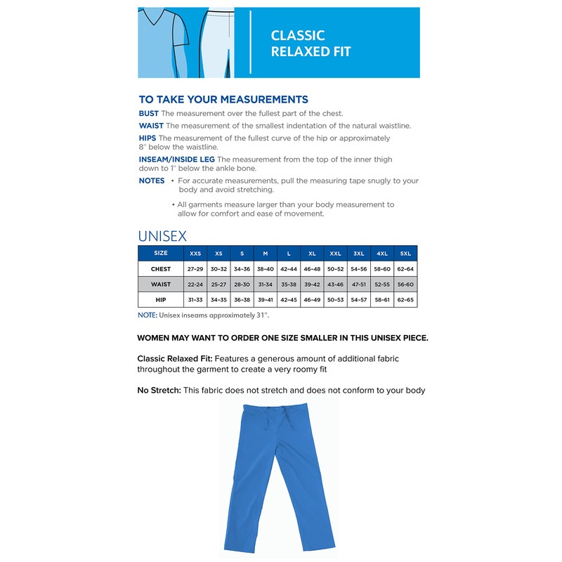 - Professional Work Wear: Reversible unisex pants offer a relaxed hip, seat, and thigh, and a straight-leg fit to allow for better movement and a full drawstring waistband for maximum security; Inseam: Regular: 31 3/8”, Petite: 28 7/8”, Tall: 33 3/8”