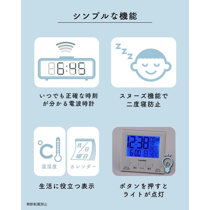 LANDEX YT5308 Alarm Clock, Radio Waves, Light, Temperature, Humidity, Date, D...