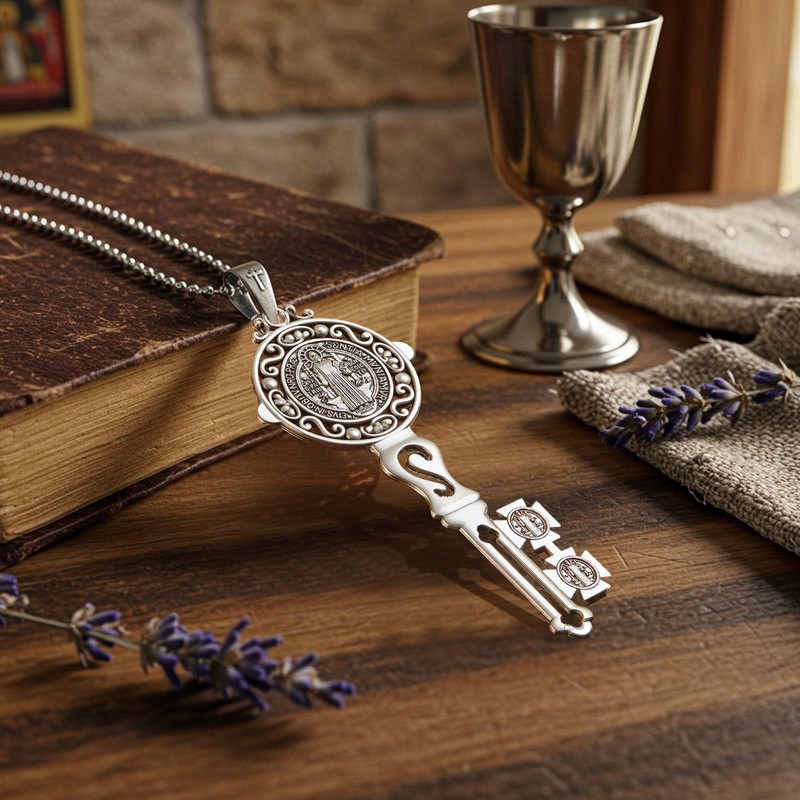 The St. Benedict keys serve as a symbol of spiritual protection.