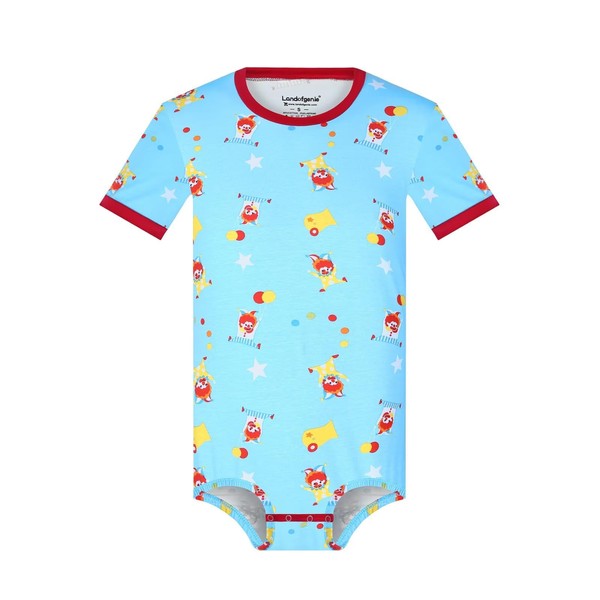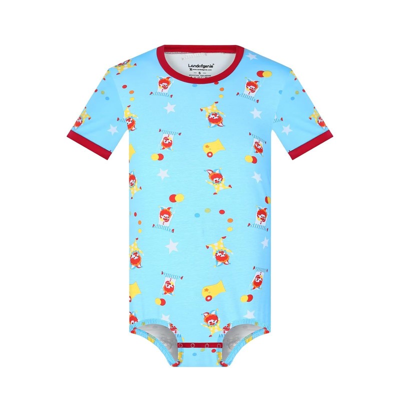 Landofgenie Men's Bodysuit Onesie Pyjamas Short Sleeve Romper for Men Bodysuit with Clown Print, lightblue, L