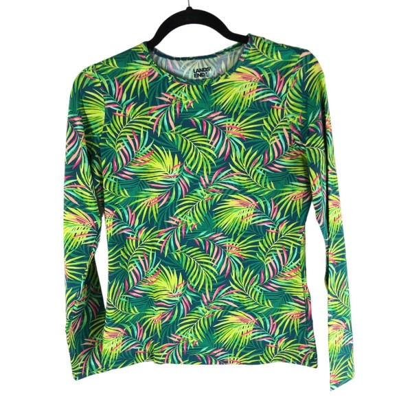 Lands' End Lands End Crew Neck Long Sleeve Rash Guard UPF 50 Swim Tee Green Palm XS