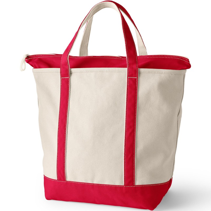 Lands' End Natural Zip Top Canvas Tote Bag Natural/heritage Red Medium