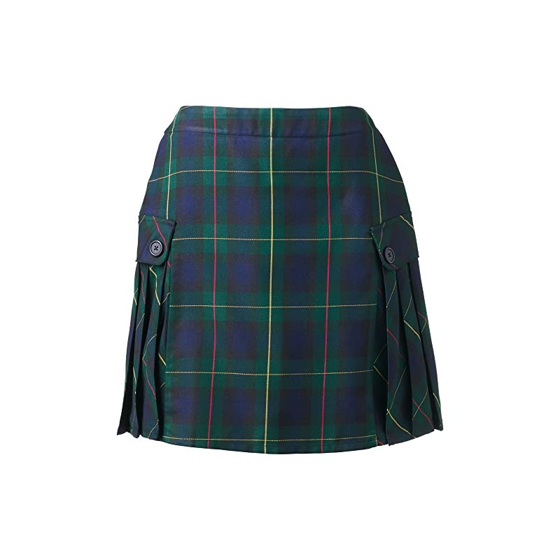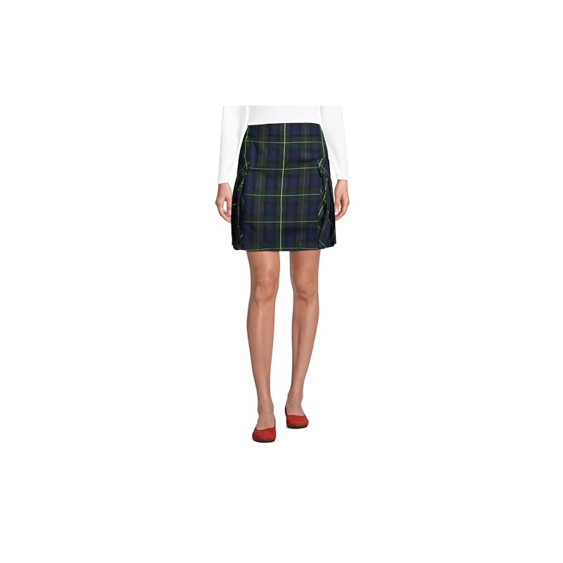 Lands' End Uniform Plaid Side Pleat Skort Above The Knee Hunter/Classic Navy ...