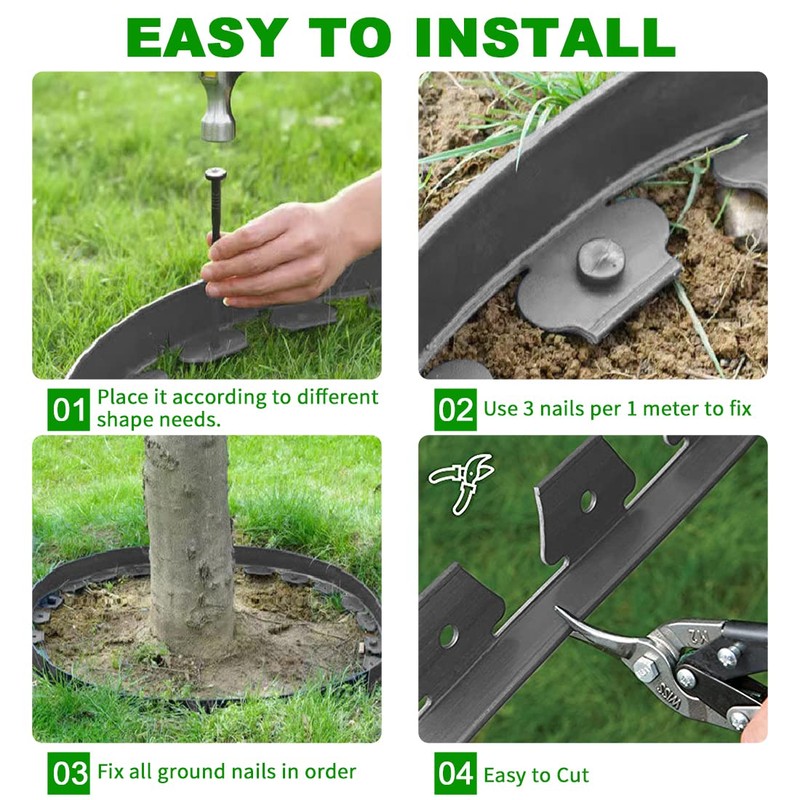 - EASY INSTALLAION:No dig the lawn, just bend it the shape of the landscape what you want, then hammer stakes every few feet or around key bends to hold the edging in place.